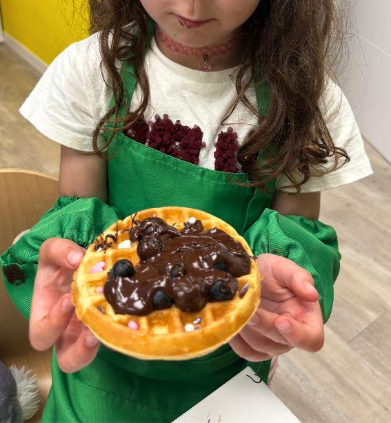 Una experiencia deliciosa donde los pequeños chefs prepararán auténticos gofres belgas desde cero: aprenderán a mezclar la masa y cocinarlos en gofrera tradicional. Después, decorarán sus creaciones con frutas frescas, siropes, chocolate y múltiples toppings dulces.