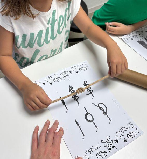 ¡Nuestro barco ha naufragado en una isla misteriosa! Los valientes náufragos deben sobrevivir: conseguir comida y agua, construir refugio y rescatar a un compañero atrapado entre lianas. Aprenderán nudos marineros, construcción de embarcaciones y trabajo en equipo. Pero eso no es todo: descubrirán un enigmático mensaje pirata que deberán descifrar para embarcarse en una emocionante búsqueda del tesoro. Siguiendo pistas ocultas, solo los más ingeniosos y valientes encontrarán el preciado botín. ¡Una aventura épica de supervivencia y piratas les espera!